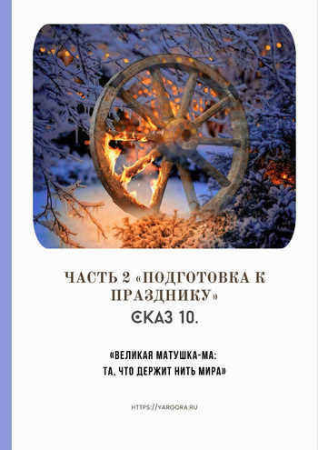 Ай, детушки да дедушки, подвиньтесь поближе, не робейте. Сказ нынче пойдёт тихий да важный — про Ту, без кого ни день не начинается, ни путь не складывается. Про Великую Матушку-Ма, Мать-Пряху, что судьбы людские не режет, не ломает, а прядёт — как следует, по уму и по сердцу.