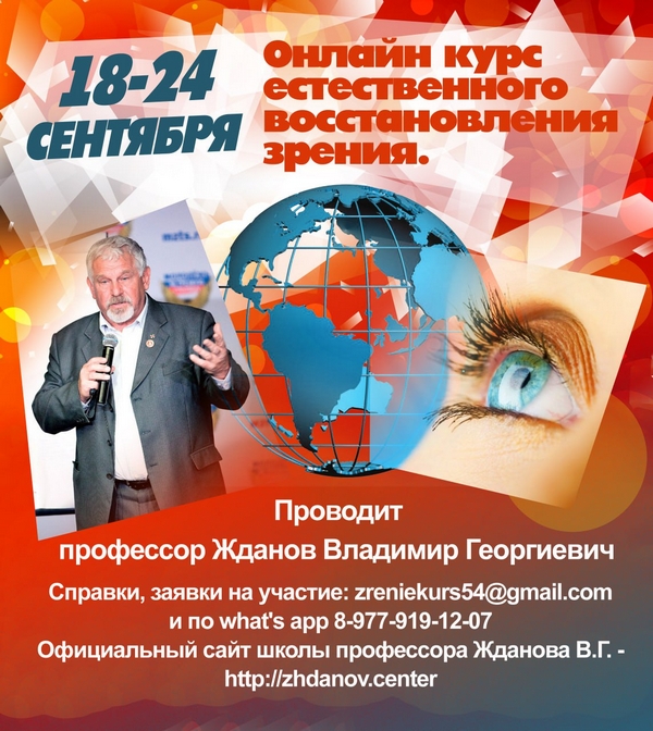 Онлайн курс восстановления зрения профессора Жданова. 28 ноября – 4 декабря 2022. ПриглашениеКурс естественного восстановления зрения в Москве. 5 - 10 декабря 2022Расписание семинаров профессора Жданова В.Г. по естественному восстановлению зрения. Январь 2023