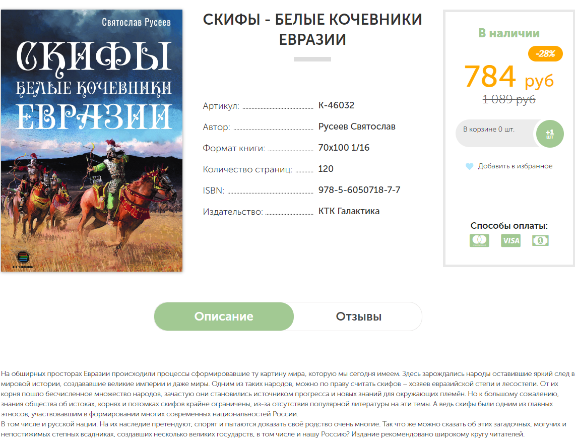 Чтобы не запутаться и не пойти по ложному следу, я создал подборку материалов об истории этих знаменитых всадников степи, которых не смогли завоевать и покорить ни Александр Македонский, ни гордый Рим, ни католические братья-рыцари. Все материалы сведены в книгу, вышедшую недавно в издательстве КТК «Галактика» и названную «Скифы — белые кочевники Евразии«. В ней вы найдёте ответы на многие свои вопросы.