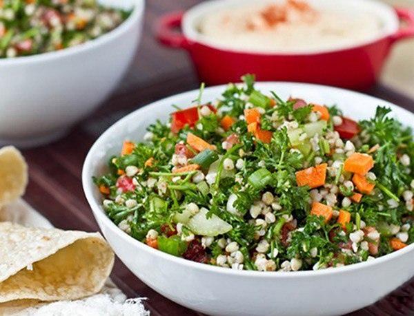 - Берем 1 стакан замоченной гречки, добавляем нашинкованные огурцы, красный или зеленый сладкий перец и морковь. Добавляем зелени по вкусу (петрушка, укроп). Заправляем льняным маслом и солим по вкусу. Смешиваешь все ингредиенты и готово