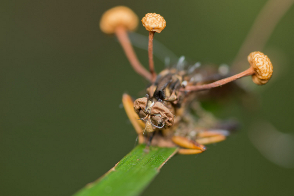 Гриб-паразит кордицепс однобокий поражает муравьев-древоточцев, обитающих в тропических лесах, и подчиняет себе их поведение. Заражённые муравьи покидают свой муравейник, отправляясь в длительный переход, совершенно бессмысленный для них и жизненно необходимый для самого гриба, в поисках идеального места размножения паразита.