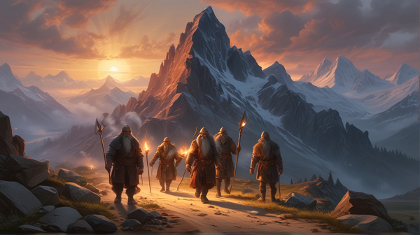 Выйдя из таверны, они увидели, что тут их целая армия. Толпа окружила их всех четверых, и вся процессия двинулась в сторону от освещённых мест. К едва чернеющим вдалеке горам. Услужливо освещая им дорогу факелами, карлики относились к ним, даже можно было сказать с некоторым почтением.