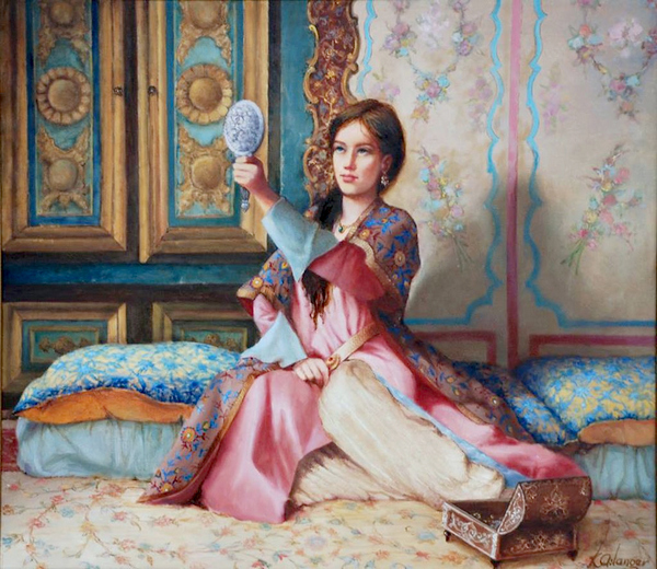 — Прошу вас, — мулатка пригласила её движением рук встать в таз. Рита молча сделала то, что от неё хотели. Тёплая, вкусно пахнущая вода приятно омыла её тело. После непродолжительного купания ей предложили встать на постеленный возле таза мягкий коврик. Вторая служанка похожая не то на китаянку, не то на таитянку, ловко вытерла всё её тело, встав на колени, вытерла её ступни ковриком, на котором Рита стояла. Её тут же одели в красивые одежды, которых Рита никогда прежде не видела. Даже в кино. И наконец, третья служанка усадила её на мягкий диван, раскрыла свою шкатулку. По комнате разлился целый букет благовоний. Она молча и ловко натёрла открытые места её тела какими-то маслами. И сделала ей легкий макияж. Потом поднесла к её лицу зеркало.