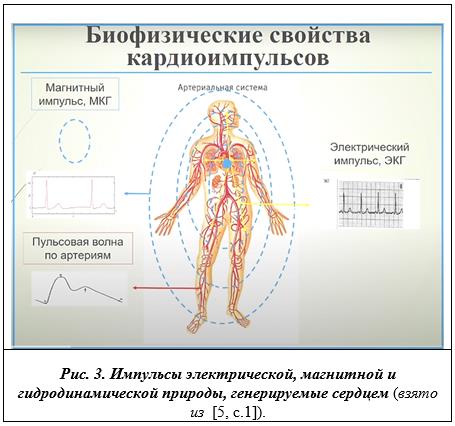 1. Сердце генерирует импульсы электрической, магнитной и гидродинамической природы, которые распространяются в масштабе организма человека и могут регистрироваться в любой его точке (рис.3).