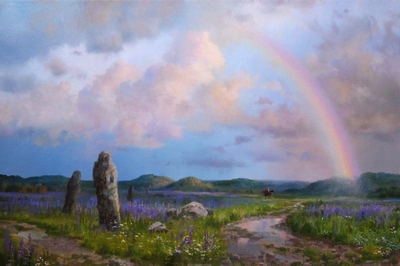 А в небе, радужно блистая,
