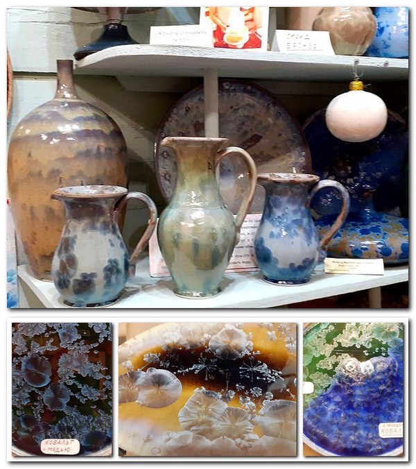 Особая гордость мастеров Жебель - изделия в технике кристаллической глазури. Секрет этого вида нанесения глазури считался потерянным. Но Людмила Николаевна смогла его раскрыть. Кристаллические глазури - это глазури с крупными кристаллами. Кристаллы растут в процессе обжига. Считается, что покрытые такой глазурью изделия меняют структуру воды.