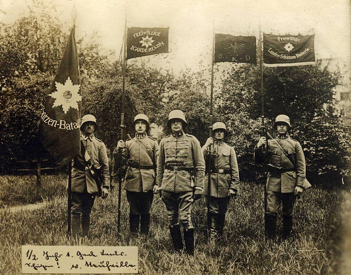 Так или иначе, но вскоре после утверждения на верхушке власти немецкие социал-демократы начали сливать своих прежних соратников. Было открыто заявлено о поддержке правых фрайкоров (Freikorps - добровольческие корпуса). Бесславное окончание войны, унизительные условия мира озлобили фронтовиков и многие возвращавшиеся военные стали (поначалу) стихийно собираться в отряды для борьбы с левыми - революционерами, добивавшимися крушения старых порядков.
