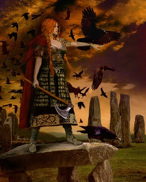 В мифологии Ирландских Кельтов присутствует целая группа богинь-воительниц. Одна из них Морриган (ирл. Mór-ríoghain, «Великая Госпожа Воронов», «Великая королева») — богиня войны в Ирландской мифологии. Её можно воспринимать и как отдельное божество, и как своего рода триипостасную богиню. Сама богиня участия в битвах не принимала, но непременно присутствовала на поле боя и использовала всё своё могущество, чтобы помочь той или иной стороне (см. «Википедия», статья «Морриган»).