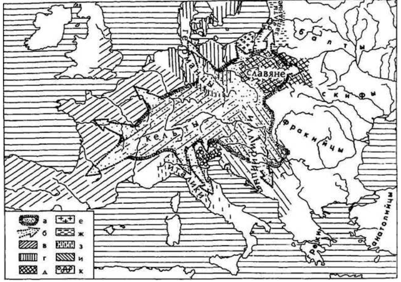 Рис. 1. Расселение древнеевропейцев и их дифференциация на отдельные этносы.
