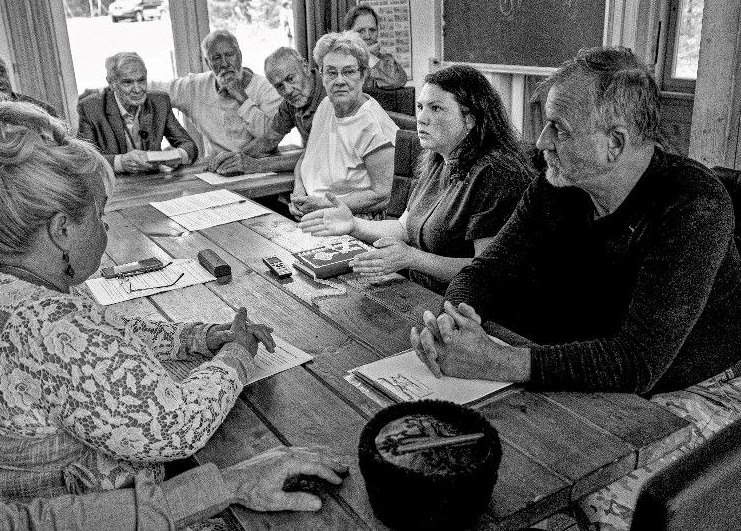 Фото 4. Член РОО «Родовые поместья» и житель поселения Светодар Денис Халимов рассказывает гостям круглого стола о деятельности РОО по оказанию помощи нашим бойцам в зоне СВО