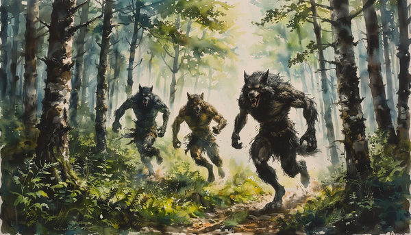 Разделившись на две группы и оставив двух бойцов ликвидировать засаду, лейтенант Изотов повёл своих товарищей в противоположную сторону, по следу бандеровцев. Во время интенсивной ходьбы солдаты мысленно запустили трансформацию своего тела. На данный момент это для них не представляло большого труда. В считанные минуты человеческие тела превращались в обросших шерстью монстров, представлявших из себя что-то среднее между человеком и волком. Гораздо сложнее последние дни проходило обратное превращение из монстров в нормального человека. Вот и теперь, спустя некоторое время, солдат было уже не узнать. Теперь все трое больше походили не на бойцов Красной Армии, а на огромных лесных хищников, по какой-то своей прихоти вставших на задние лапы и одевшихся в человеческую одежду. А вот обуви на них не было. Чтобы не издавать лишнего шума и не порвать сапоги отрастающими в считанные секунды острыми когтями, как на руках, так и на ногах, их бойцы оставили в своих вещмешках в грузовике. Командир взвода, несмотря на то, что они уже до этого времени преодолели немаленькое расстояние, всё так же легко и свободно бежал впереди группы. Проступающие даже через одежду, мышцы приятно гудели от нагрузки. Босые ноги с удовольствием наступали на мягкую лесную подстилку из старой листвы и травы. Если иногда и оказывался под ступнёй какой-нибудь старый сучок или ветка, то огрубевшие подошвы ног, за прошедшее с момента превращения в волколаков время, почти не ощущали такую мелочь. Время от времени Изотов останавливался и, чуть наклонившись к земле, с силой втягивал широкими ноздрями воздух. Убедившись, что не потерял след, он делал короткий взмах рукой, и группа вновь продолжала движение.