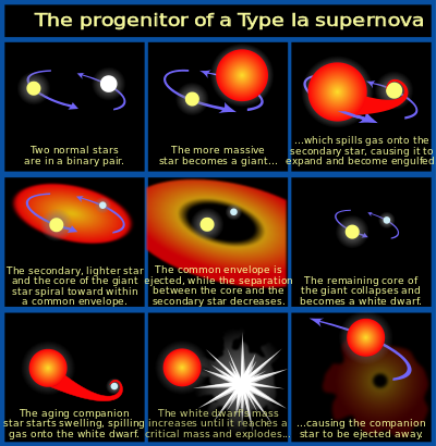 Примечание: знающие физики скажут, что излучение света атомом происходит при переходе электрона с высшего на один из низших энергетических уровней, у звезды же такого нет — а вот и есть, сверхновые типа Ia, это совокупность красного газового гиганта и белого карлика. В атоме, электрон больше проявляет свои волновые свойства, он как бы "размазан" вокруг ядра и в определенном приближении можно сказать, что ядро окружено "газовой" оболочкой.
