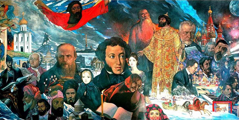 Вот хотя бы взять того же Ф. М. Достоевского. На мой взгляд, он просто непревзойдённый автор, который таким образом исследует Человека, во всех его перипетиях, во всех его нюансах, взлётах, падениях, метаниях, странностях, страхах, и так далее… Удивительную, потрясающую картину русского Народа даёт Л. Н. Толстой. Я почему говорю о литературе? Потому что в мировой культуре я пожалуй не нахожу более такого мощного средства, которое бы так исследовало человека. Особенно нашего – русского человека. Лев Толстой, так тот просто светом исходит, таким глубинным светом какого-то духа любви к Народу. Он просто сияет, он просто дышит этим. Что-то же он разглядел, что так восхищался. Тот же Тургенев, тот же Гоголь. А Пушкин — тоже непревзойдённая величина, это и Лермонтов, и Лесков и многие другие.