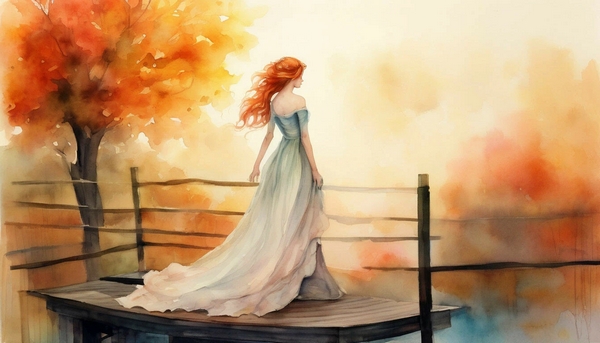 Изумрудная зелень озорных глаз с благодарностью метнулась на звук этого голоска. Встряхнув огромной копной огненно-красных волос, Осень подошла к девушке с золотыми кудрями, спадающими с плеч, словно струи искрящегося в солнечных лучах водопада, которыми играл лёгкий, тёплый ветерок. Отчего эти струи казались живыми. Они словно бы струились сверху вниз. Её милое, прелестное лицо излучало бесконечную доброту.