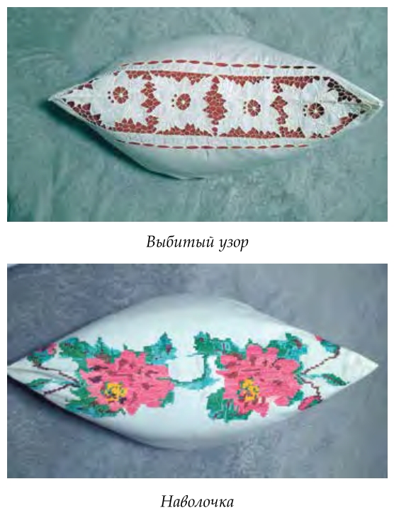 Это наволочки. Одна пара с вышивкой — от мамы. Другая, с выбитым узором — от её родной сестры, моей тёти.