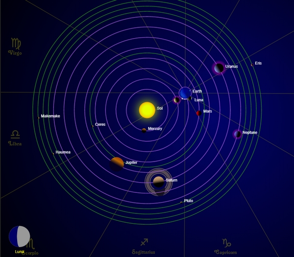 Всё как всегда — Земля находится на максимальном удалении от нашего защитника Перуна (Юпитер), и он экранируется Солнцем и противостоит Сатурну (такое впечатление, что на одном из спутников Юпитера находятся наблюдатели от некой Галактической Организации следящей за законностью происходящего на Земле).