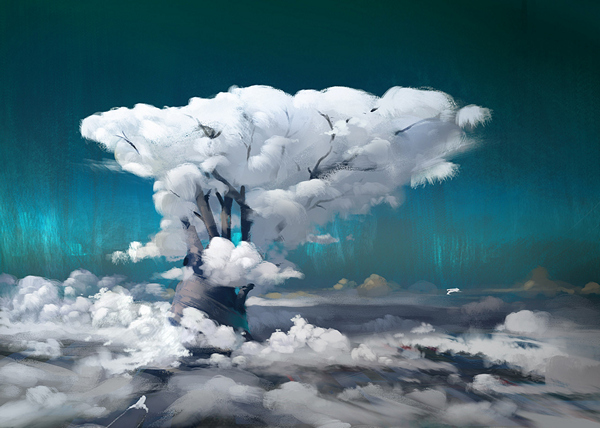 Его верхушка терялась в серой холстине огромной тучи, медленно, протяжно вздыхавшей, устало пытаясь оторваться от веток.