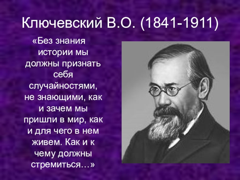 "Нашу русскую историческую литературу нельзя обвинить в недостатке трудолюбия, она много работала, но я не возведу на нее напраслину, если скажу, что она сама не знает, что делать с обработанным ею материалом...." В. О. Ключевский
