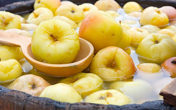 - Обычно яблоки и ягоды замачивают в сладкой воде, часто её подсаливают и добавляют пряности: корицу, гвоздику душистый перец.