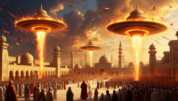 Сразу же после объявления царём Ароном об аресте своего брата Мосея из виманы вышло десять пятнадцатиметровых воинов аннунаков, вооружённых оружием Богов. Они встали между царём Ароном и царём Мосеем. Царь Арон с отрядом воинов евреев невольно отступил, освобождая место для воинов аннунаков.