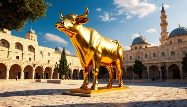 Царь Арон решил установить золотого тельца в центре центральной площади столицы царства Палестины.