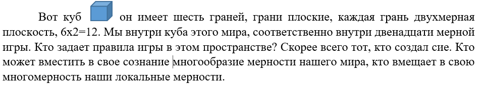 Первая из них (истин), сложена первыми же семью буквами матрицы — Аз Бога Ведаю Глаголю Добро Есть Есмь. Подобным образом нам прописан Кон, потому что буквица и есть инструмент кона. БукВа — бук обратным прочтением Куб, Ва — внутренняя суть. Куб и есть вместилище двенадцати мерной игры.